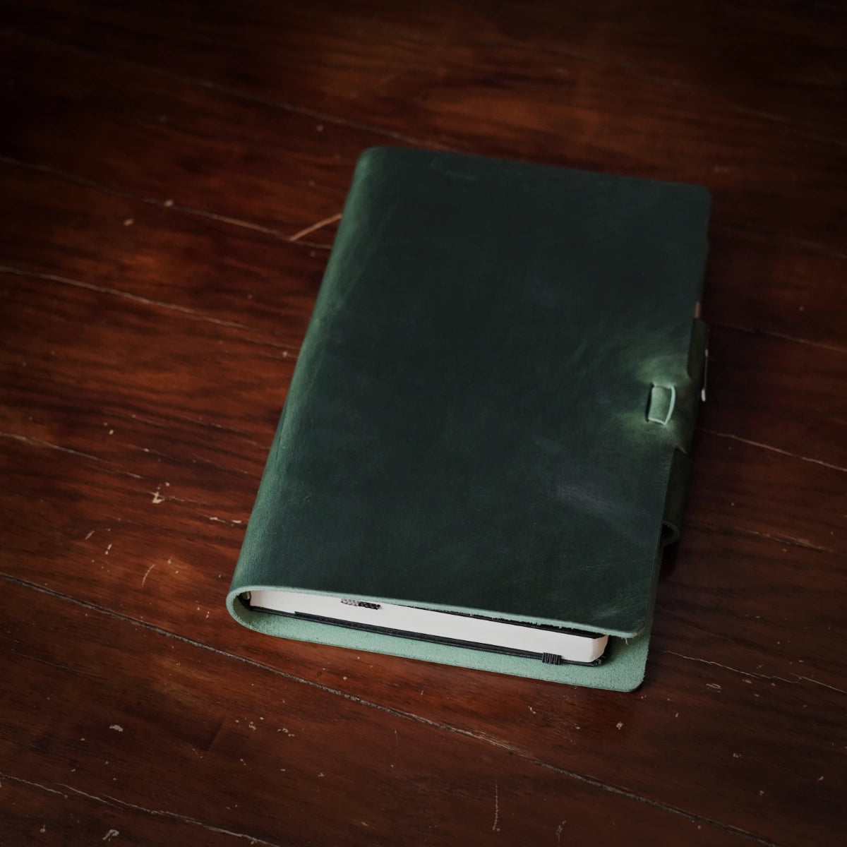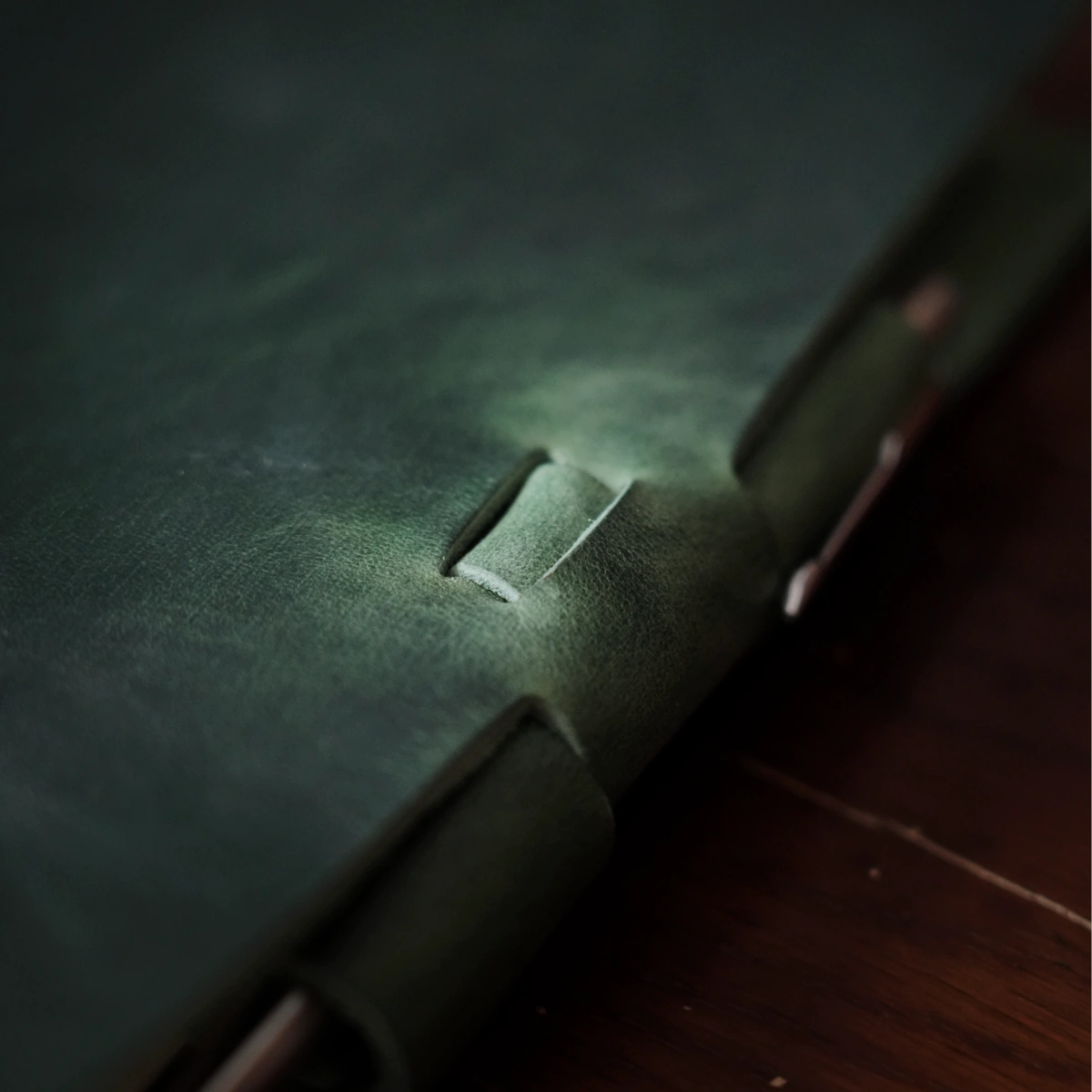 Our Limited Edition deep green leather 5 Year journal, available in limited quantities. Handcrafted with 5-7oz full-grain cowhide, our Limited Edition leather is chrome tanned in Milwaukee, Wisconsin.