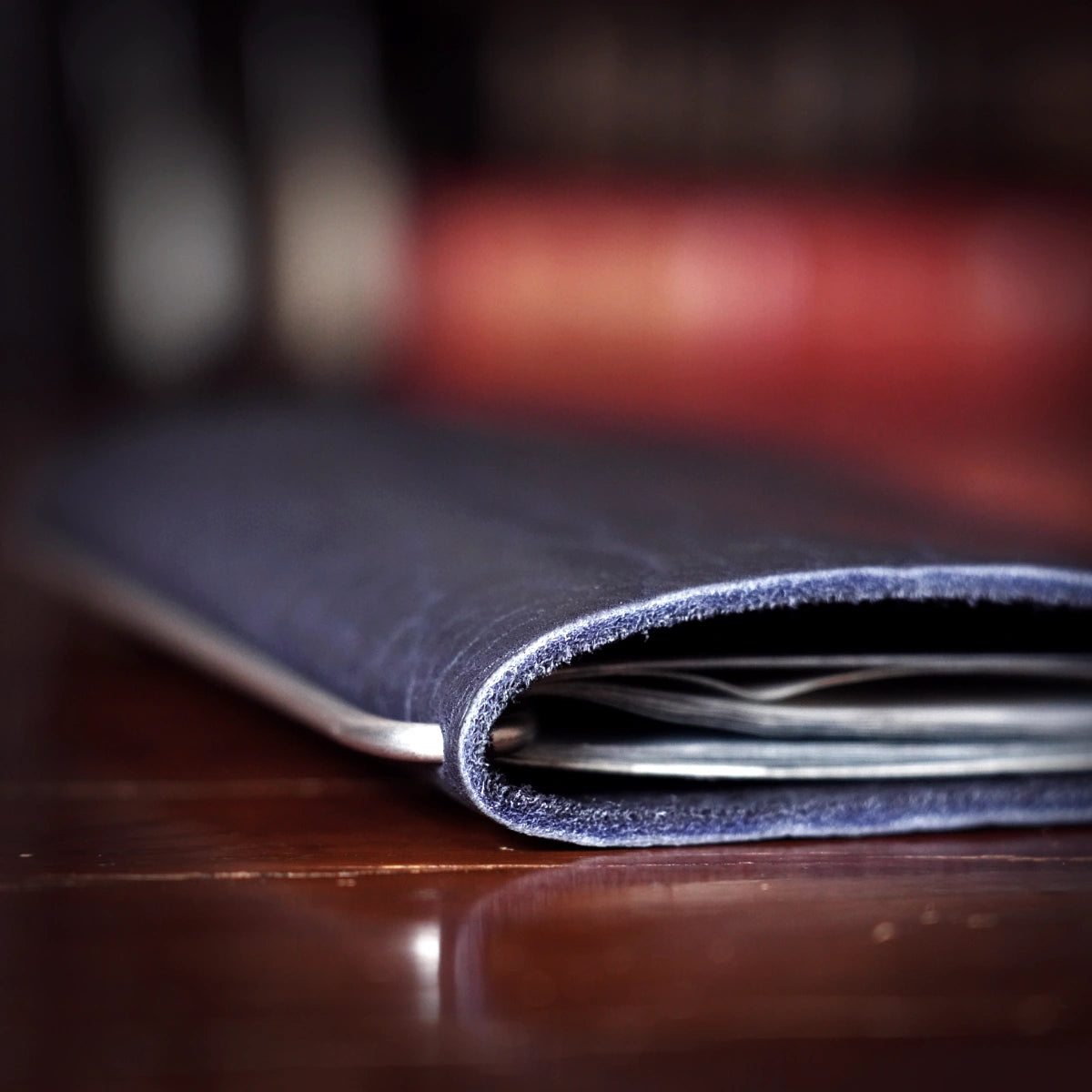 Crafted from chrome-tanned bison and available in limited quantities, our Limited Edition Bison leather is tanned in the USA. It features a vibrant blue and black two-tone accent and a beautifully varied deep grain pattern.