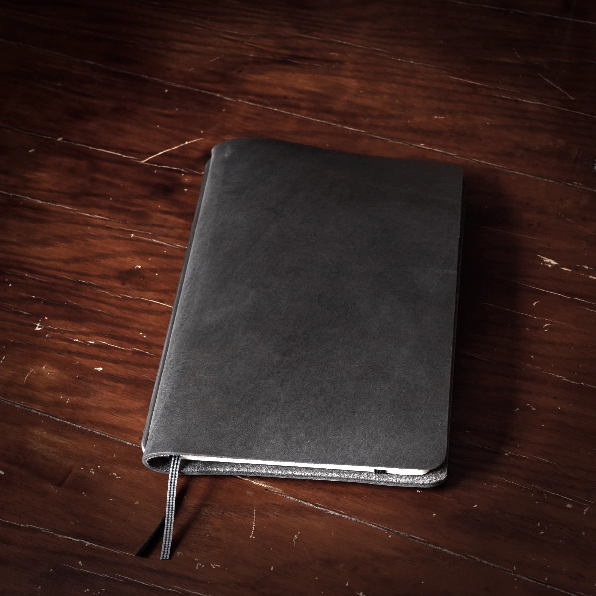 Created with the busy writer in mind, our cover uses an innovative, rod binding construction, to allow for up to 30 sheets of 8.5" x 11" 24lb paper. It is compatible with A4 metric paper and A5 Softcover inserts (like Leuchtturm1917) up to 3/8 in thick or roughly 125 pages.
